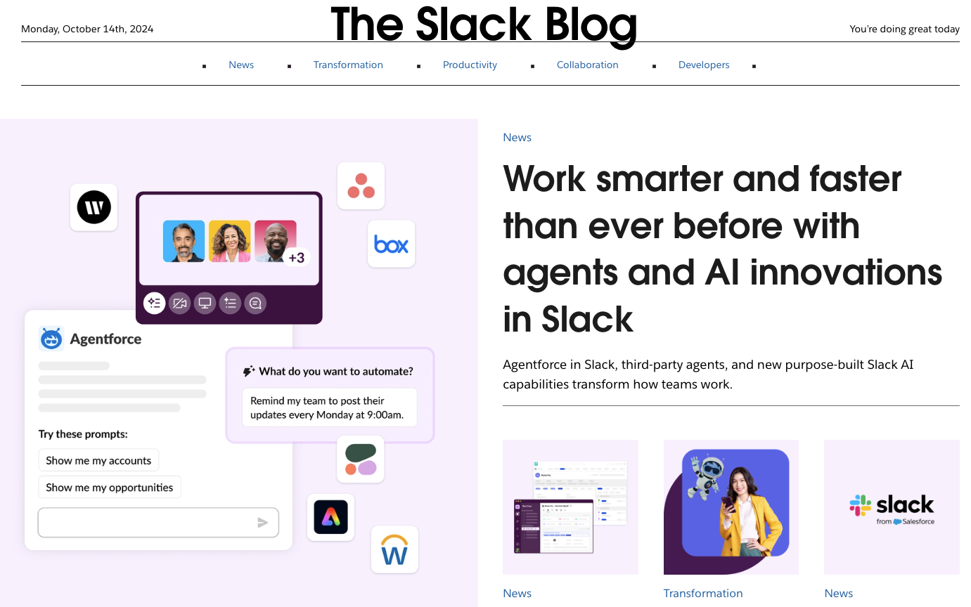 Slack’s business blog posts are an integral part of its content marketing strategy. Their blog covers a wide range of topics, from team collaboration and communication tips to industry trends.